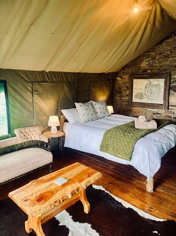 Tucked on a timber deck with panoramic Karoo views, the Tent House blends safari charm with practical comfort. Canvas walls breathe with the breeze while solid flooring and a cosy bed keep things comfortable. Unzip to sunrise, cook simple meals in the kitchenette, and end evenings with a braai under a river of stars. It’s the perfect middle ground between camping and a cabin — wild enough to feel the veld, snug enough to sleep soundly. Pets are welcome by arrangement; please keep them on leash outdoors and bring their bedding.